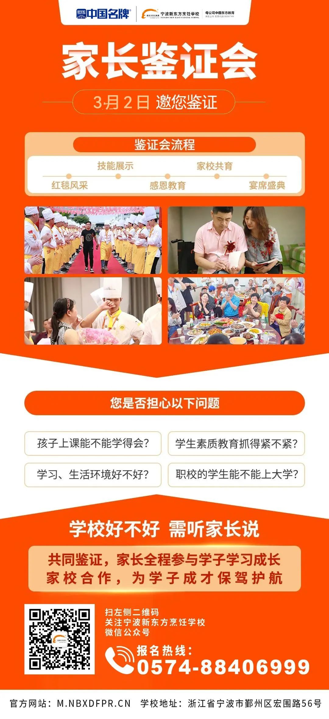 生命千姿百态,成长摇曳生香。师生碰撞,共同收获知识的芬芳。家校共育,一起守望孩子的成长。孩子的成长在时光中留下了数不尽的故事,这些经历需要我们家校共同分享。宁波新东方烹饪学校家长鉴证会于3月2日,本周六暖心启幕!诚邀您一起,共同鉴证孩子的成长。