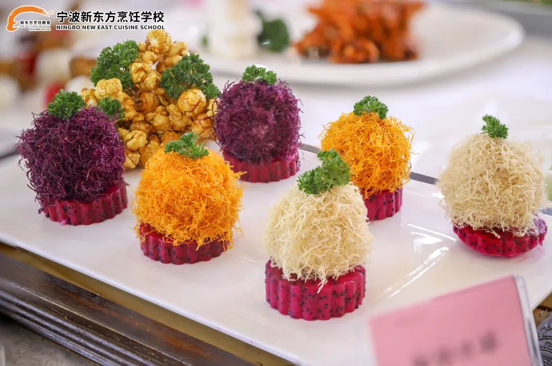 中餐热菜、果蔬雕刻、花色冷拼、西点烘焙、裱花蛋糕......宁波新东方的学子们将以最高的创新意识和技术水平迎接大赛,大展身手亮出自己的烹饪实力,拿出各自的看家本领进行一场色、香、味的饕餮大比拼,比赛场地上百花绽放,我们静看花落谁家!